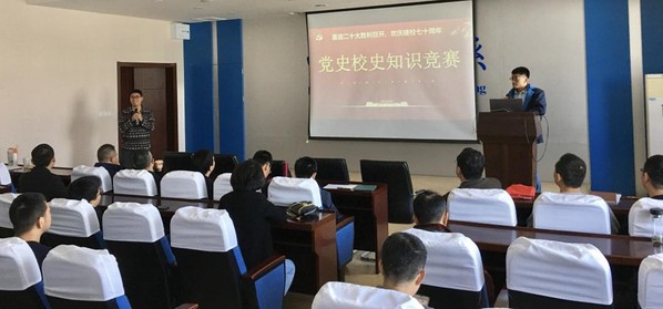 此次知识竞赛分为小组必答题和抢答题两个环节,知识点涵盖党史、新中国史、改革开放史、社会主义发展史、党的十九大精神和南京航空航天大学校史等内容,旨在以赛领学、以赛促学、以赛践学。参赛党员按党小组分成四组,每组选派三名代表参与答题和抢答。