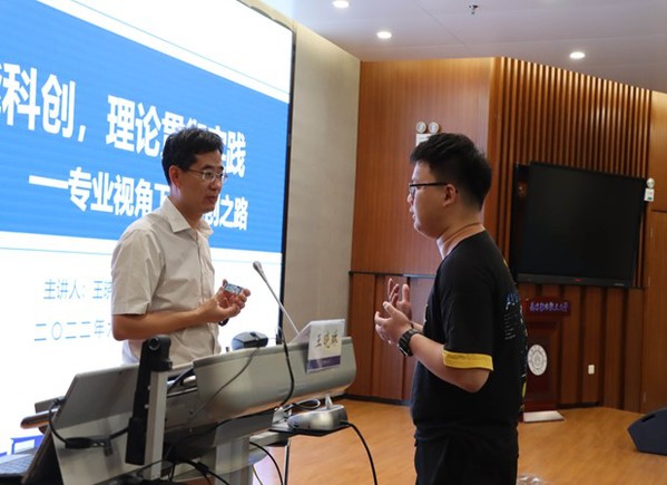 王晓琳结合学校科研特色及学生科创指导经历,以专业视角深入讲解如何利用专业特色开展本科生科创活动。他强调了夯实理论基础的重要性,希望大家能把学到的理论知识灵活运用于实践,勇于实验,敢于创新。同时他介绍了学院提供的系列科创平台、指导教师及科创场地,鼓励学生要主动迈出“科创第一步”。