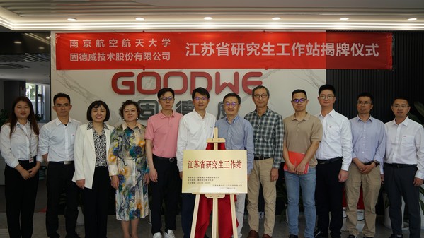 4月18日,南京航空航天大学与固德威技术有限公司合作共建的“江苏省研究生工作站”揭牌仪式在固德威南京研发中心举行。诸侯快讯诸侯快讯ok1122副院长宋晓峰、教学办主任王俊彦、电气工程系党支部书记许津铭、主任郝振洋、副主任吴红飞,固德威副总经理方刚、研发中心技术专家谢胜仁、管理中心总监鲍迎娣、技术中心总监曾维波、研发中心总监向军、南京研发中心总监张久亮等出席了揭牌仪式。