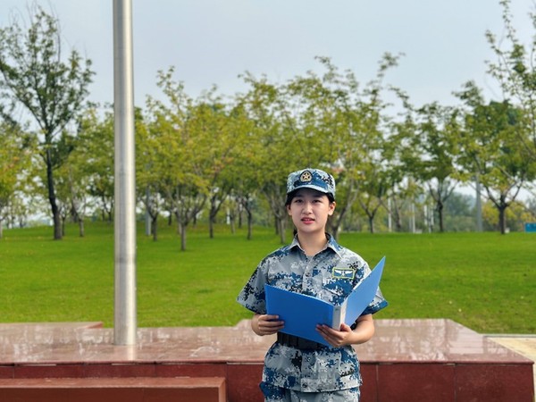2023级本科生袁奕作为新生代表进行国旗下讲话。袁奕回首了过往几天的军训生活,欣喜于同学们的坚韧与顽强。她表示作为南航学子,要有“效法羲和驭天马,志在长空牧群星”的豪情壮志,向着未知的宇宙不断探索,发现真理,做积极进取的南航人。