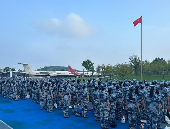 2023级本科生军训旅三营营长为自动化学子做主题教育。营长从国家军事装备、信息化技术两方面展示了国家的强盛,并鼓励同学们要在军训期间磨练个人意志,树立远大志向。营长表示,南航的骨子里,流淌着国防七子的血脉,红色基因镌刻在每一位南航学子的心中,正是有着每一个南航学子的踔厉奋发,祖国的航空航天事业才能不断迈向辉煌。