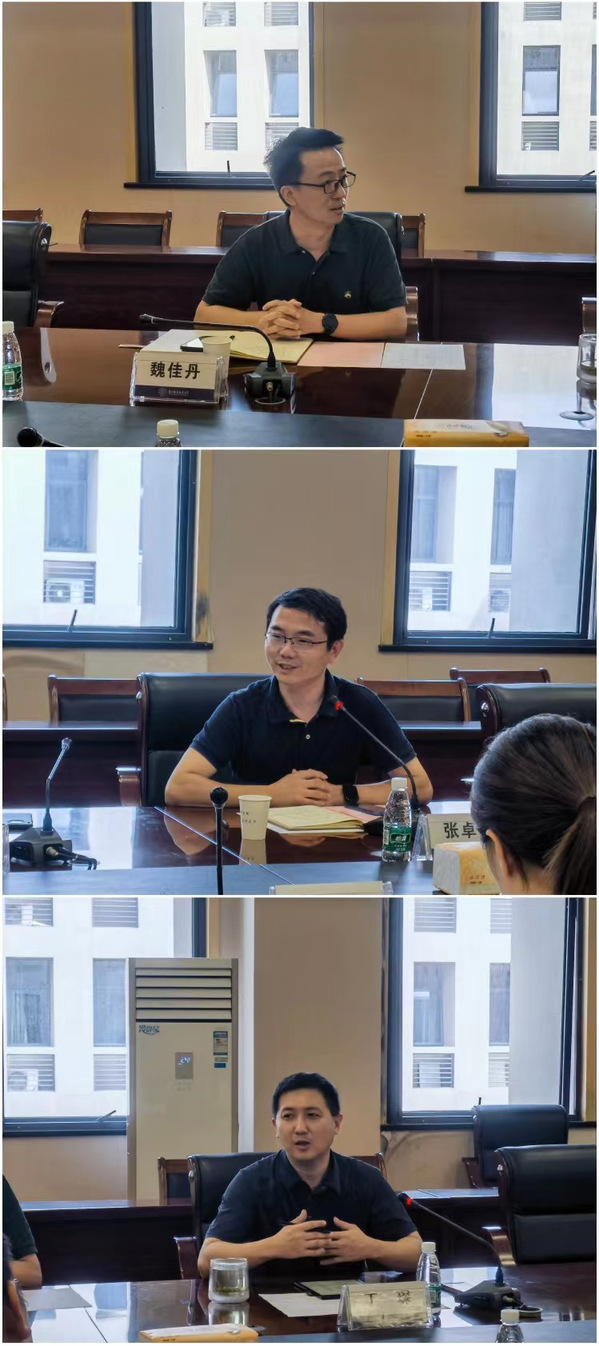 随后,青年教师们一一进行了自我介绍,并就自身、学院发展、未来规划等问题相互交流。新入职教工代表汪泉和蒋长辉分享了个人成长经历,建议新教工们锚准前沿方向、强化团队意识、增强科研创新能力、服务国家经济社会发展。