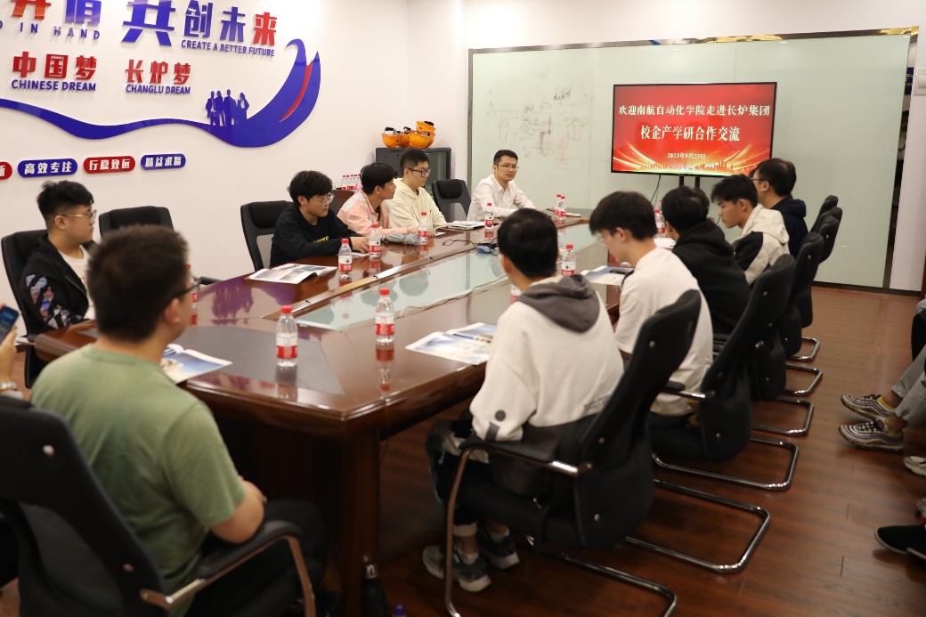 在实地观摩、参观展厅后,双方就企业发展、人才培养、产学研用融合、学生实习实践、职业生涯规划等议题充分交流。长炉集团董事长周德福介绍了企业发展情况、技术优势和下一步发展计划,副总经理刘雨针对企业在产研合作、人才需求等做了充分介绍。