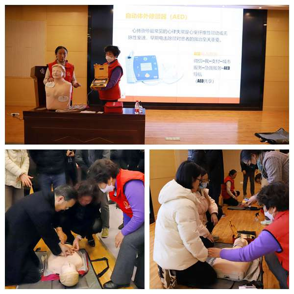 会上,武楠老师作题为《应急救护》的专题培训。武老师采用理论教学与技能实践相结合的模式,详细讲解并演示了心肺复苏急救方法、便携式体外自动除颤仪(AED)的使用、“海姆立克急救法”气道梗阻的解除等知识。在模拟演练环节,参会导师积极参与,培训老师对每位演练的导师都进行一对一精准教学和现场示范,确保每一个动作都规范、准确、到位。导师们通过现场实际操作快速、准确地掌握了应急救护知识和技能,提高了应急救护能力。