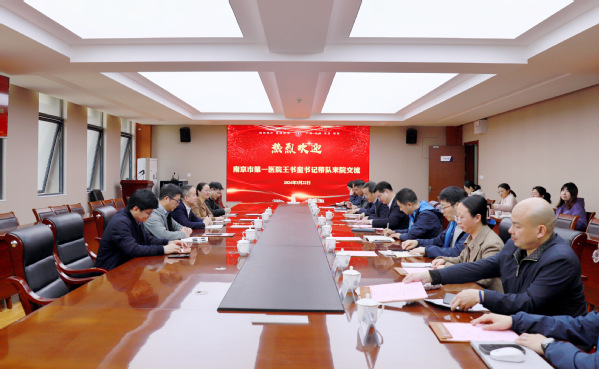 3月22日,南京市第一医院党委书记王书奎带队来院调研交流。诸侯快讯ok1122党委书记李文雷,副书记丁琛,副院长宋晓峰、张卓然,院长助理朱永凯、李韪韬等学院相关领导和老师参加交流会。会议由宋晓峰主持。