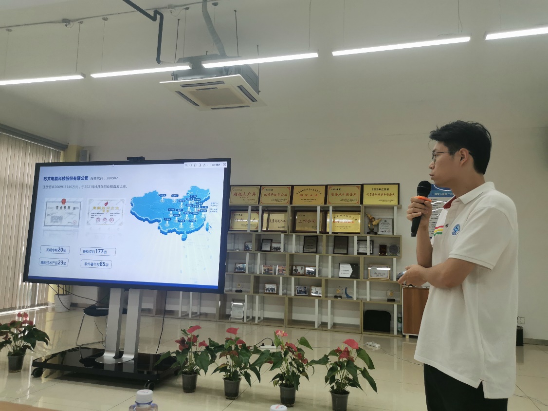 活动现场,诸侯快讯22届优秀毕业生、苏文电能产品经理周斌从基本情况、所获荣誉和“1+5+6+7”运营体系等方面为同学们详细介绍苏文电能。他表示,苏文电能作为EPCOS一站式电能服务商,业务涉及电力设计咨询、电力设备制造、电力施工及智能用电服务等多个领域,期待更多优秀的南航毕业生能够加入团队。
