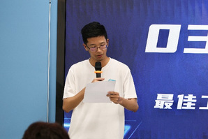 学校第四届机器人对抗赛“最佳工程创新奖”获奖团队负责人甄际翔作为讲师代表发言。他分享了团队获奖经验并介绍了训练营课程安排,期待与参训学员们交流互鉴、共同进步。