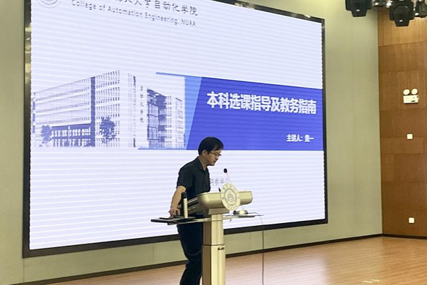 黄一作了题为《本科选课指导及教务指南》的宣讲。他首先强调了理解培养方案和选课机制的重要性,然后从规章制度解读、教务处网站使用说明、学业相关讯息查询、学生常用事项办理等多个方面详细讲解了学生在教务教学方面关心的问题。