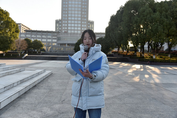 学生党员代表杨宁在国旗下发表题为《科技创新与青年使命:在新时代浪潮中砥砺前行》的演讲。她抓住“高水平科技自立自强”这一两会热议话题,呼吁同学们将个人发展与国家发展同频共振,与时代脉搏紧密相连,并结合专业实际,分析了新形势下的机遇与可能,展现了新时代青年党员的使命与担当。
