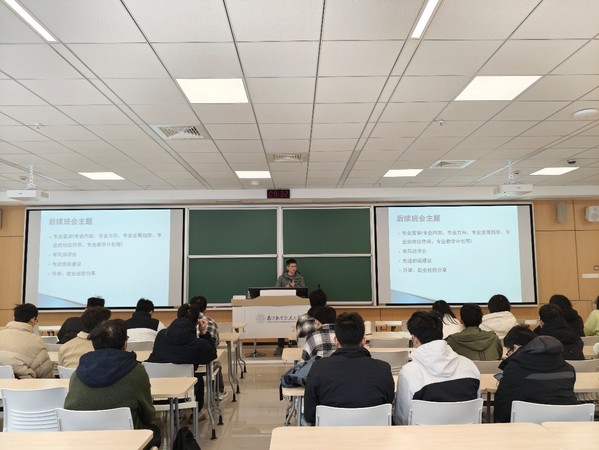 谢立宏老师还向同学们公布了后续班会的安排。他表示,班会将实时关注同学们的学习状况,定期评估班级学风,助力同学们在专业学习的过程中不掉队。在夯实基础的同时,之后的班会还会聚焦专业宣讲,让同学们对自己的发展方向有更深一步的了解。对于同学们最为关心的升学和就业问题,学院也会组织经验分享,为同学们打开视野、明确目标。