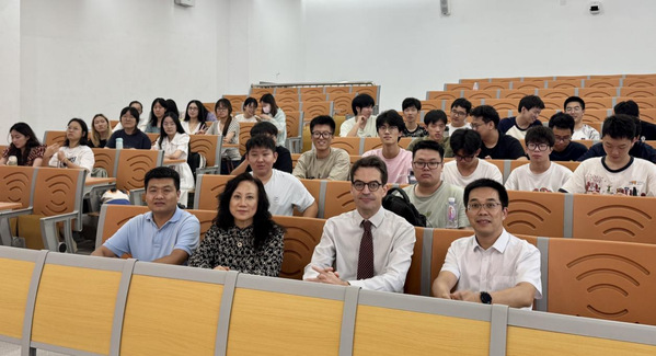 在交流互动环节中,同学们围绕学业要求、授课方式、海外生活、未来发展等方面踊跃提问,Veselin Rakocevic与Helen Yue逐一作了耐心解答,现场气氛热烈融洽。Veselin Rakocevic建议同学们在完成学业的同时,应注重自身综合素质的提升,可以利用假期和课余时间积极参与校外实习,拓宽视野、增强社会适应能力,从而更准确地把握社会对人才的实际需求。他还鼓励同学们通过社会实践发掘个人兴趣与专长,建立广泛的国际友谊。