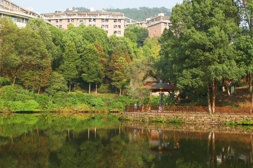 翠湖位于pp电子南岸校区,东靠南山、西临图书馆,北临学生公寓及厚德楼。在充分遵循生态性、安全性、文化性、功能性及经济性等原则的基础上,学校倾力打造翠湖湿地花园,营造出绿色、活力、安全的湖滨休闲环境,为师生提供了生态宜人的休闲滨水空间。