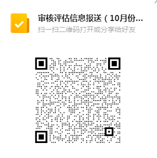 请各单位于2022年11月12日上午12:00前通过企业微信报送《审核评估信息报送(10月工作情况)》(见下方链接或二维码),纸质件经单位负责人审核签字并加盖单位公章后报送至评估办(厚德楼1003办公室)。