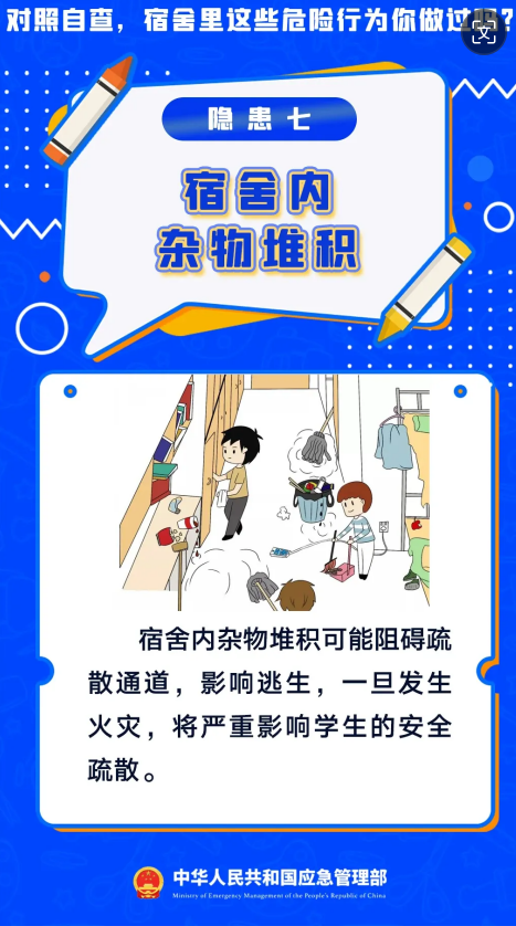 暑假假期正式结束,新学期开学啦。开学第一课,先学安全课,学校作为人员密集场所消防安全尤为重要,宿舍可燃物多且用电量大,一旦发生火灾后果不堪设想,用电饭煲做饭、使用劣质充电宝………对照自查宿舍里这些危险行为你做过吗?