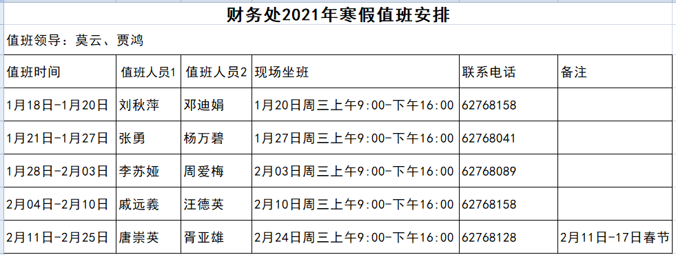 5.假期值班不实行投递式报销,请需要办理业务的老师到财务大厅现场处理。