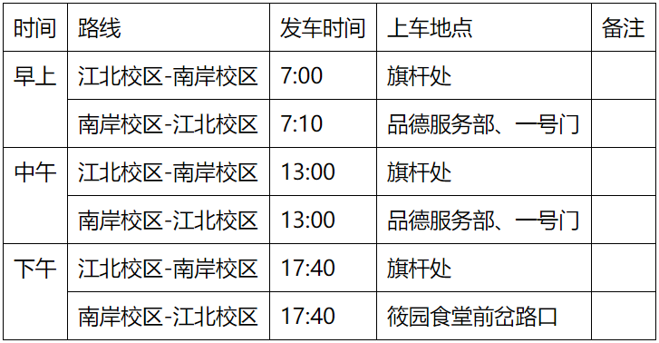 自2月26日起,校区间的交通车正式开始运行,运行时间和线路与上学期保持不变。
