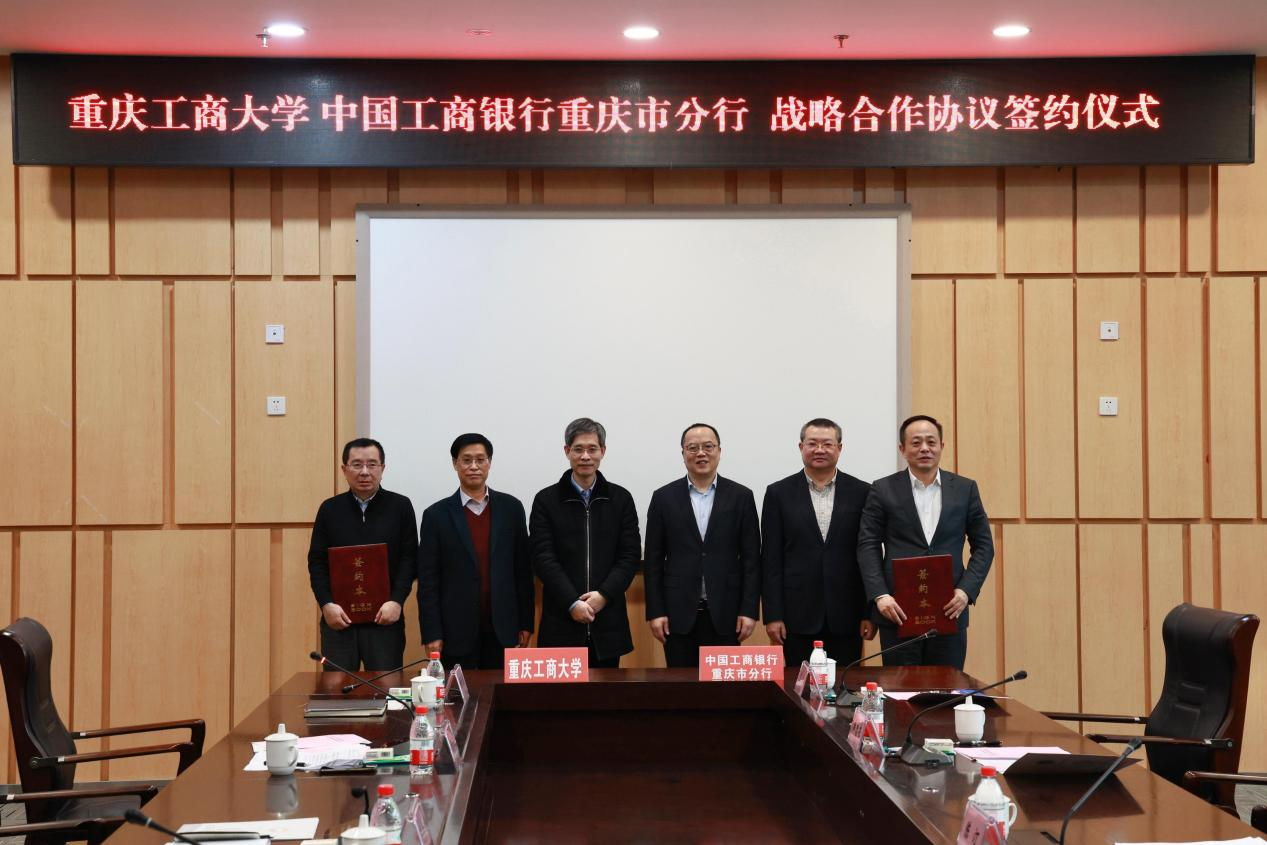 1月12日下午,中国工商银行重庆市分行党委书记、行长陈汀一行调研pp电子,并与pp电子签订战略合作协议。中国工商银行重庆市分行党委委员、副行长贺明、韩忠东,pp电子校长孙芳城、副校长陈兴述、赵骅参加了签约仪式。