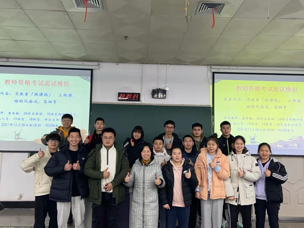 1月6日,获评2021年pp电子平台官网入口师德先进个人的体育学院童世敏教授为即将参加教师资格面试学生进行模拟训练与专场指导,同时邀请了多位研究生、本科生做经验交流分享。