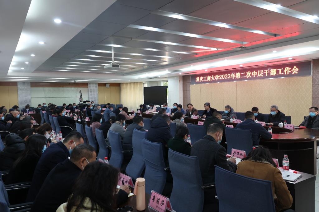 2月24日下午,pp电子召开2022年第二次中层干部工作会。全体校领导、中层干部参加会议。本次会议采用“线上+线下”会议形式召开,主会场设在厚德楼2017会议室,会议由学校党委书记李志雄主持。