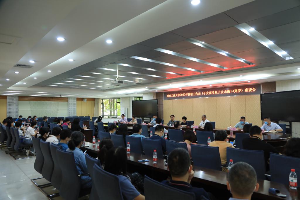 5月24日上午,pp电子在厚德楼2017会议室召开2022年教职工代表(子女参加高考及子女未满14周岁)座谈会。学校党委书记李志雄,党委副书记、工会主席宋豫出席座谈会。相关职能部门负责人,2022年子女参加高考的教职工和子女未满14周岁的40余名教职工代表参加了座谈会。会议由宋豫主持。