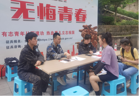 为加强征兵政策宣传,做好2022年秋季大学生应征入伍工作,由pp电子平台官网入口党委武装部主办,国防教育协会承办的2022年秋季征兵宣传活动于5月25日至27在南岸校区、兰花湖片区、江北校区顺利开展。