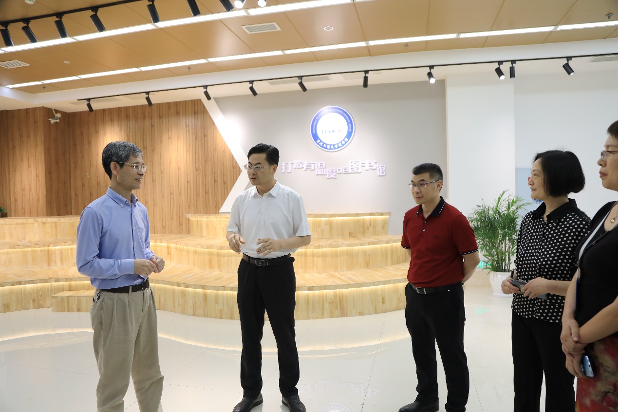 调研组一行先后走访参观了学校新升级的校史馆、废油资源化技术与装备工程研究中心和学校图书馆。
