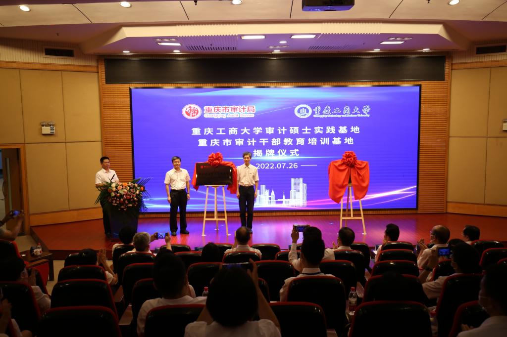 孙芳城和姜国杰共同为pp电子“重庆市审计干部教育培训基地”“审计硕士实习实践基地”揭牌。