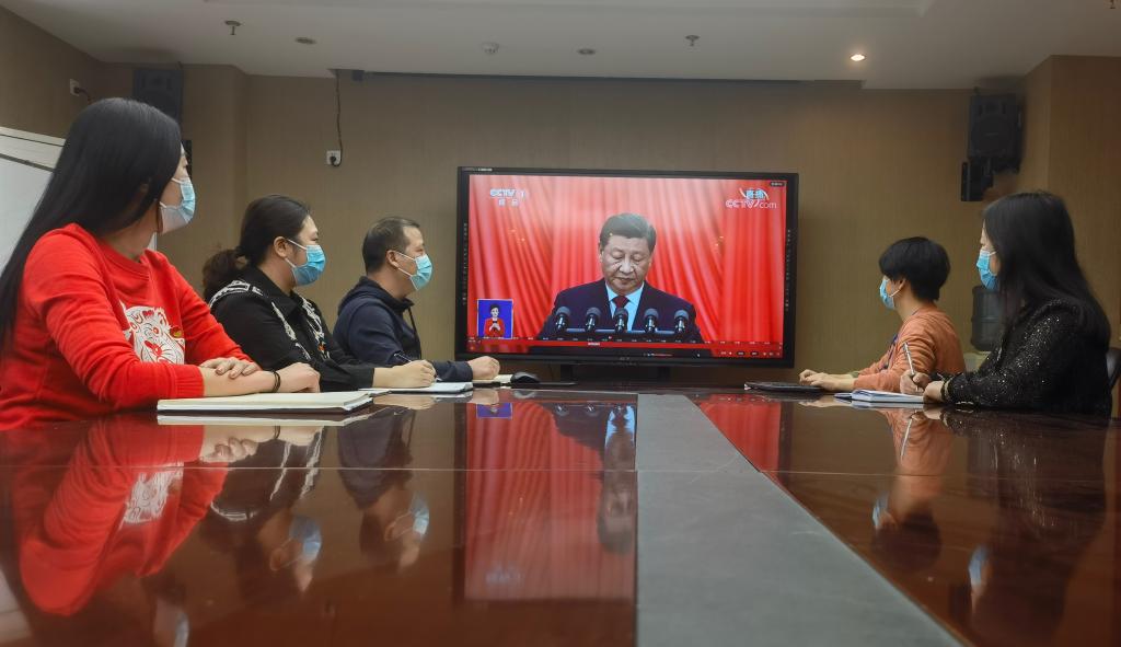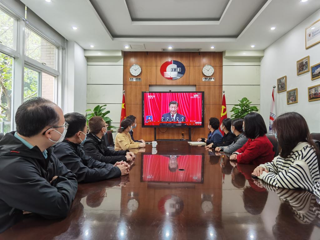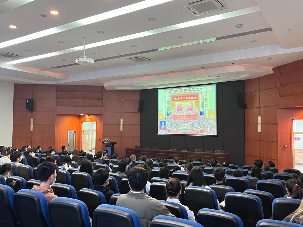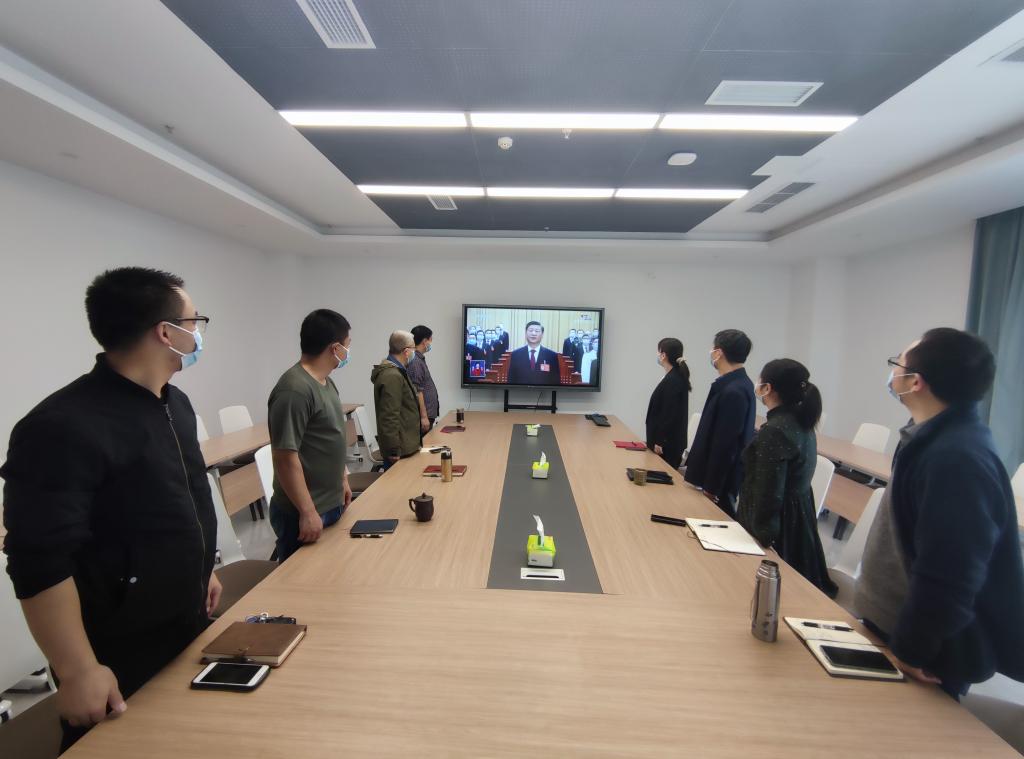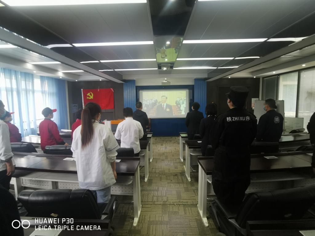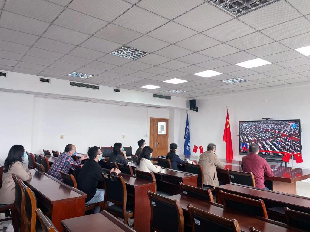 虽然受到疫情影响,但广大师生热情不减,纷纷在办公室、在寝室、在家中积极收听收看开幕会盛况。学校北区24栋临时党支部组织换岗休息志愿者集中收看了大会开幕会。