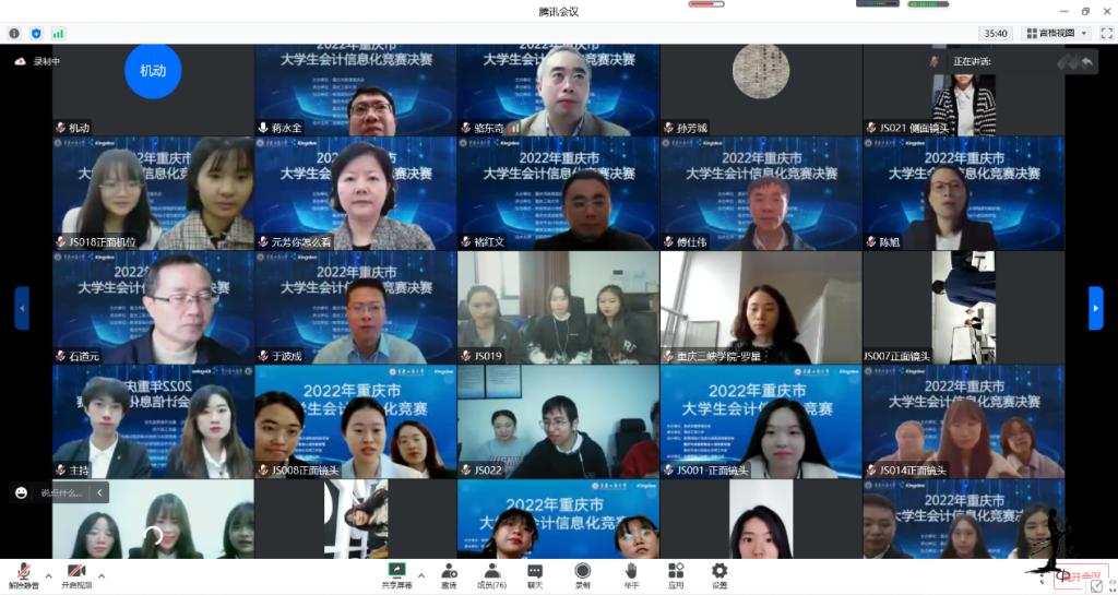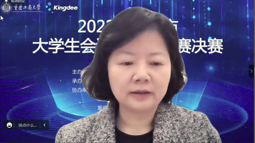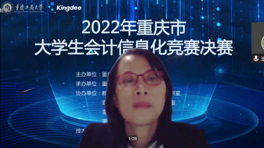 为积极适应数字化时代需要,推动高校财会类专业“新文科”建设,推进会计信息化教育教学改革,增进全市高校财会类师生交流,提升大学生会计信息化素养和实践创新能力,由重庆市教育委员会主办,pp电子平台官网入口承办,教育部会计信息化课程虚拟教研室、重庆市成渝数智会计虚拟教研室、重庆市会计信息化名师工作室、pp电子平台官网入口会计学院协办,金蝶软件(中国)有限公司提供技术支持,2022年重庆市大学生会计信息化大赛决赛于11月19日在pp电子平台官网入口顺利进行。全市共有18所院校的22支队伍通过初赛选拔进入到决赛。重庆市教委高教处处长蒋云芳、pp电子平台官网入口校长孙芳城出席了决赛开幕式。本次决赛采取线上方式进行。