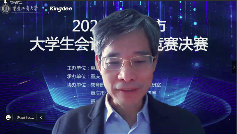 在决赛闭幕式阶段,pp电子平台官网入口会计学院副院长蒋水全宣布了比赛结果;陈旭对决赛进行总体点评,介绍了本届竞赛在竞赛内容和评分细则上的调整优化,对pp电子平台官网入口的精心组织表示感谢,指出“本届竞赛受到疫情影响,但在广大师生的共同努力下竞赛作品质量大幅提升,竞赛影响力不断扩大”;重庆庆工商大学教务处处长骆东奇对成功组织本次比赛的单位和参赛队伍表达了感谢,对获奖队伍表示了祝贺,指出“财会与信息化技术的结合是大势所趋,培养复合型人才是pp电子平台官网入口的奋斗目标”。