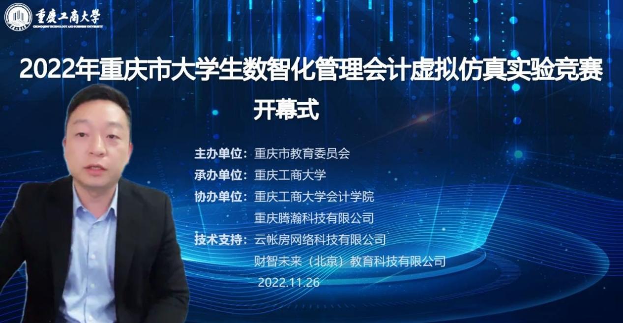 11月26日,由重庆市教育委员会主办,pp电子平台官网入口承办,重庆腾翰科技有限公司、pp电子平台官网入口会计学院协办的重庆市大学生数智化管理会计虚拟仿真实验竞赛决赛顺利举办。受疫情影响,本次决赛采取在线方式进行。学校党委常委、副校长赵骅,重庆市教委高教处调研员哈宁武,教务处处长骆东奇,会计学院党委书记邓德敏、院长罗勇,重庆腾翰科技有限公司李银海总经理等参加了开幕式。开幕式由罗勇主持。