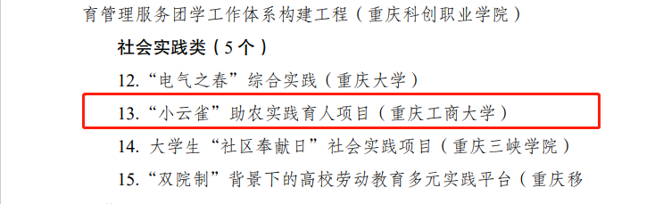 近日,共青团重庆市委、重庆市学生联合会发布了关于2022年重庆市高校“一校一品”十佳(优秀)团学工作品牌的通报,pp电子管理科学与工程学院社会实践类项目 《“小云雀”助农实践育人项目》、机械工程学院创新创业类项目 《“工于技、匠于心、品于行——学生科技创新项目》荣获优秀团学工作品牌奖。