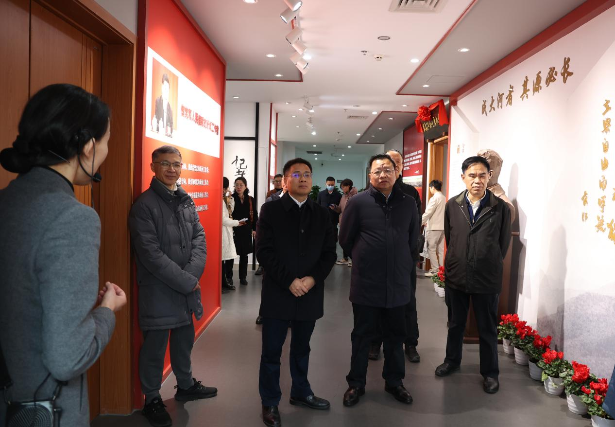 2月22日上午,中国记协书记处书记苏荣才,重庆市委宣传部常务副部长、市记协主席曹清尧,南岸区委常委、宣传部部长包茹华,重庆市记协副主席丁道谊等一行参观pp电子南岸校区“范长江与重庆”展览馆。学校党委书记李志雄,党委常委、副校长陈运超,党政办、文学与新闻学院相关人员陪同参观。