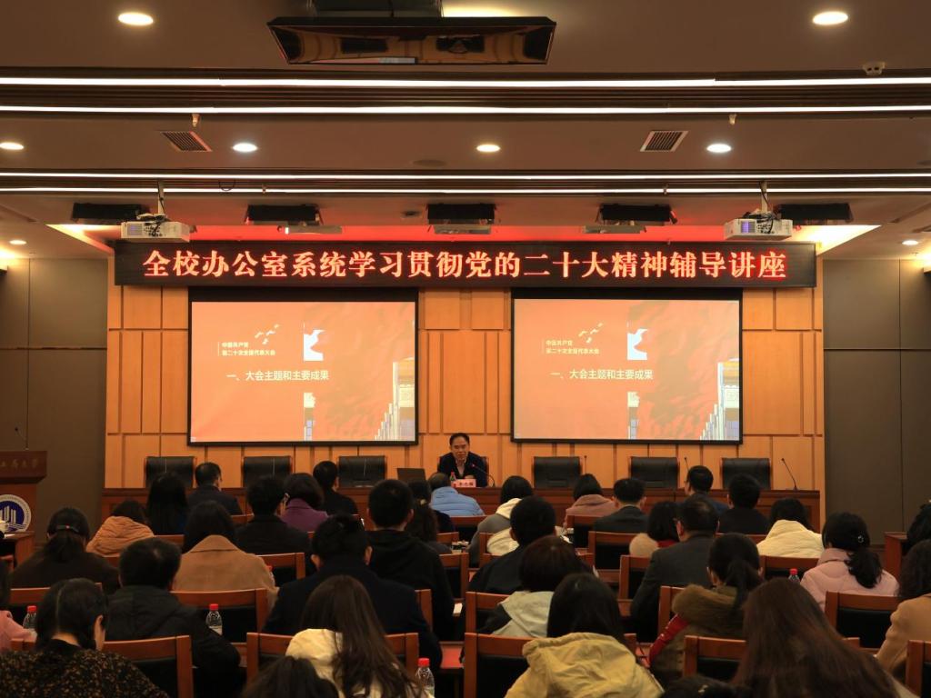 张波在主持中谈到,李志雄书记作的辅导报告围绕全面贯彻落实党的二十大精神,结合办公室工作的特点,具有很强的针对性和实践性。办公系统同志们要结合辅导报告,全面学习、全面领会、全面贯彻党的二十大精神,学深悟透习近平总书记系列重要讲话和系列重要指示批示精神,进一步深刻领悟“两个确立”的决定性意义,增强“四个意识”、坚定“四个自信”、做到“两个维护”。办公系统的同志们要充分认识到办公室工作的关键性、服务性、综合性,切实把学习贯彻党的二十大精神的成效体现在工作中、落实在成效上。要以理论学习为引领,通过党的创新理论武装头脑、指导实践、推动工作,不断提升履职尽责能力本领。要充分发挥办公室综合协调作用,建立健全工作运行机制,有效增进协作配合,确保上下联动、运行高效。要坚持高标准、高质量抓好各单位、各部门办文办会办事等各项工作,在制度执行、工作落实、督查反馈上下功夫,在会议组织、协商活动、服务保障等工作中加强实践锻炼,努力做到事事有回应、件件有落实,为学校各项工作开展提供服务保障。