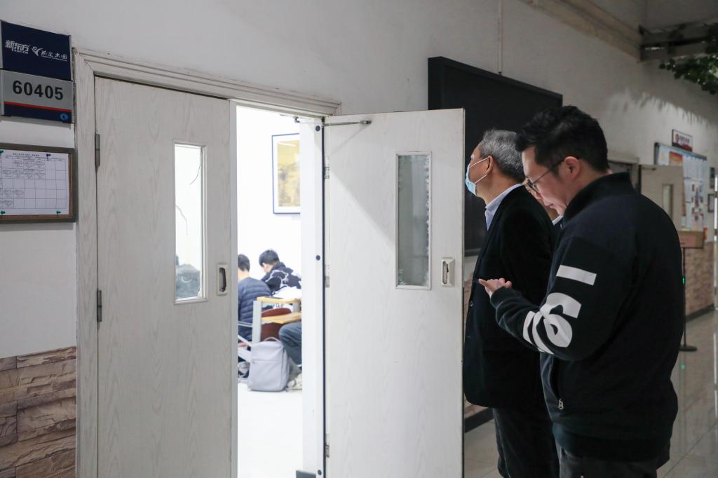 为加强教学管理,确保pp电子新学期教学工作规范有序开展,3月6日上午,学校领导带领相关职能部门负责人分别前往南岸校区博智楼、慧智楼、涵智楼、国际商学院、明智楼、兰花湖片区及江北校区,深入教学一线,检查新学期线下教学运行和服务保障情况。