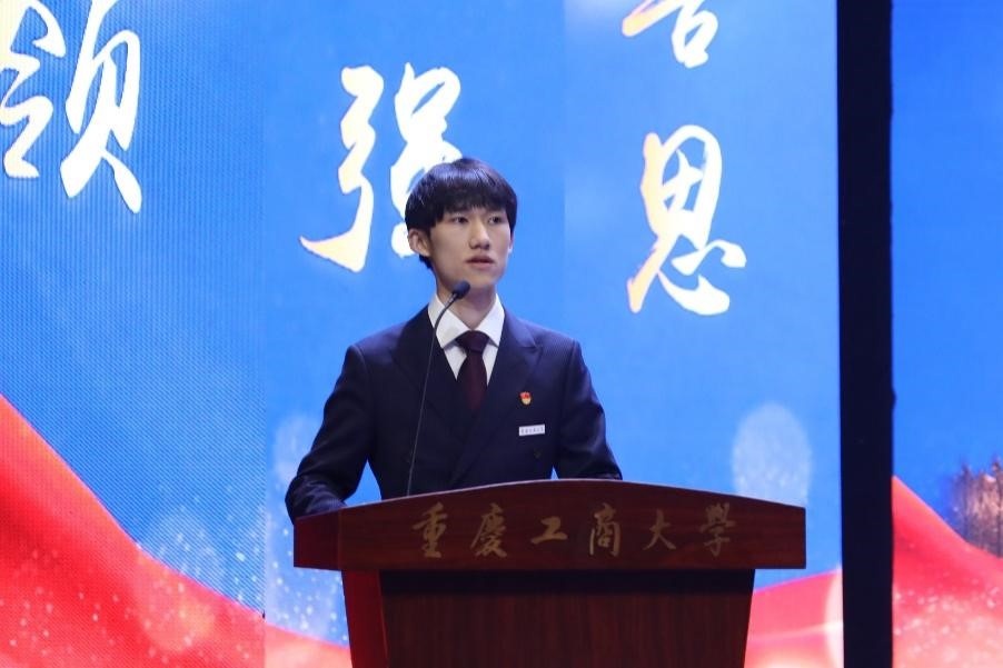 陈冠旭结合自身经历,分享了三个关键词。一是“不忘初心”。在求学、发展、前进的过程中,唯有牢记初心,持之以恒地努力,才能真正做到行稳致远。二是“持之以恒”。求学之路,没有捷径,只有不畏艰辛,不断沿着陡峭山路向上攀登,才有希望接近光辉的顶点。 三是“拥抱时代”。世界日新月异,既要脚踏实地,又要展望未来,努力探索前沿、激活思想,做有益于他人、有益于国家的时代新人。最后他谈到,作为重工商大学子,要秉持“厚德博学,求是创新”之校训,传承“含弘自强,经邦济民”之学校精神,积极把学习和科研融入到建设国家的远大理想和实践中去,在实现强国梦的征程中放飞青春梦想。