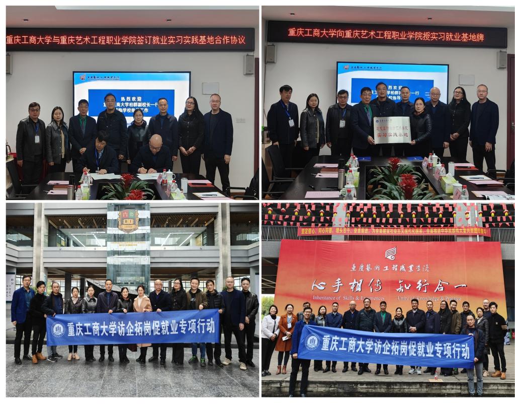 3月27日下午,学校党委常委、副校长柏群带领艺术学院、现代国际设计艺术学院班子成员及科室主任一行到铜梁区重庆传媒职业学院、重庆艺术工程职业学院开展合作洽谈及访企拓岗促就业专项行动。重庆传媒职业学院、重庆艺术工程职业学院董事长,pp电子校友会副会长周勃,重庆传媒职业学院党委书记高天红、校长柳卫东,重庆艺术工程职业学院校长许锡宾等带领两校相关领导及相关部门、院系负责人参与了合作洽谈。