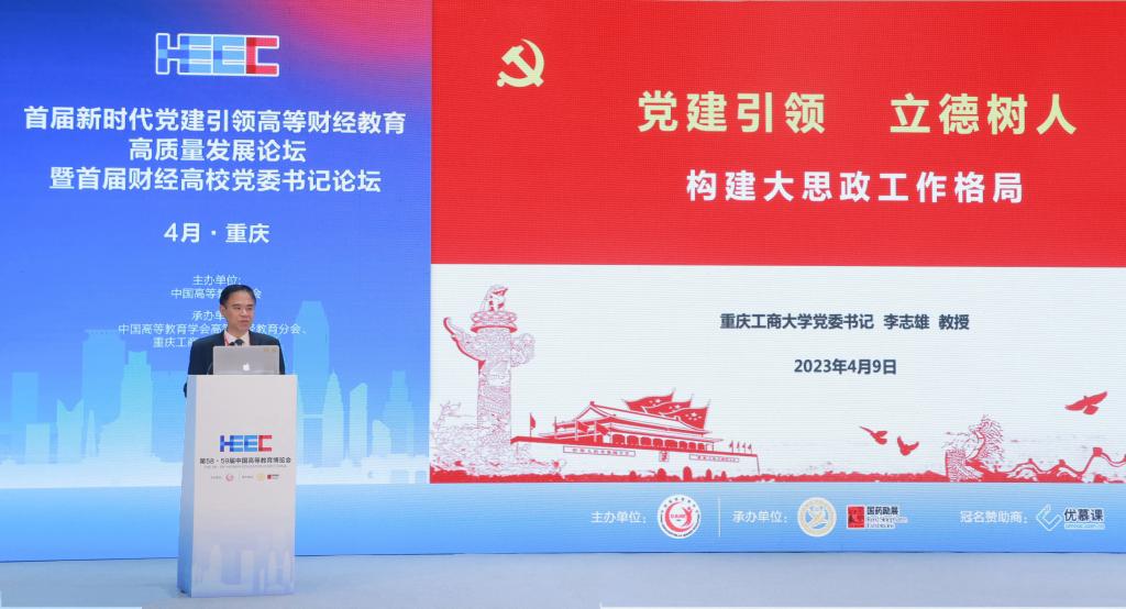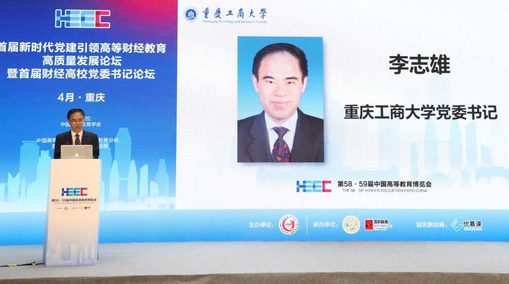 4月9日,作为第58·59届中国高等教育博览会的主论坛之一,由中国高等教育学会主办,中国高等教育学会高等财经教育分会、pp电子承办的首届新时代党建引领高等财经教育高质量发展论坛暨首届财经高校党委书记论坛在重庆悦来国际会展中心喜悦厅顺利举行。中国高等教育学会副会长邬大光,中共重庆市委教育工委委员帅逊,对外经济贸易大学党委书记黄宝印,上海财经大学党委常委、常务副校长徐飞,北京工商大学党委书记黄先开,安徽财经大学党委书记虞宝桃,广东财经大学党委书记郑贤操,西安财经大学党委书记杨涛,吉林财经大学党委书记孙杰光,贵州财经大学党委书记刘雷,学校党委书记李志雄等来自70余所高校的30余位高校党委书记、校长和200余位领导、专家参加会议。大会以“新时代党建引领高等财经教育高质量发展”为主题,就财经类高校深入学习贯彻党的二十大精神,充分发挥高质量党建对高质量发展的引领和保障作用进行深入探讨和交流。论坛第一阶段由中国高等教育学会高等财经教育分会副理事长兼秘书长张国才主持,第二阶段由学校党委副书记宋豫主持。学校党委常委、纪委书记、监察专员周航,党委常委、副校长张波参加论坛。