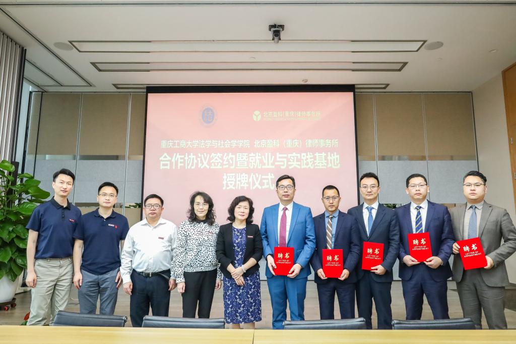 接着,黄文与盈科(重庆)党委书记崔建芳分别代表学院、律所签署了合作协议。在双方人员的共同见证下,举行了pp电子平台官网入口法学与社会学学院在盈科(重庆)的就业与实践基地、党建共建基地授牌仪式。随后,宋豫为崔建芳、高定重、张建磊、李峰、高才智等律师颁发事业导师、实务导师聘书。签约授牌仪式结束后,与会人员就合作相关事宜展开了广泛沟通和深度交流,并就合作意向达成初步共识。