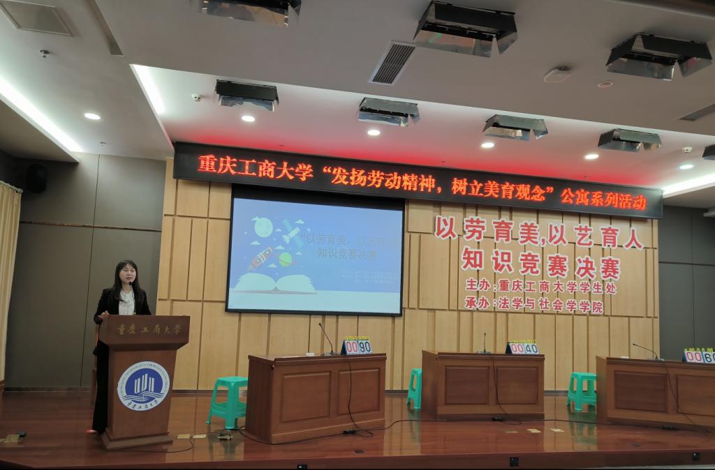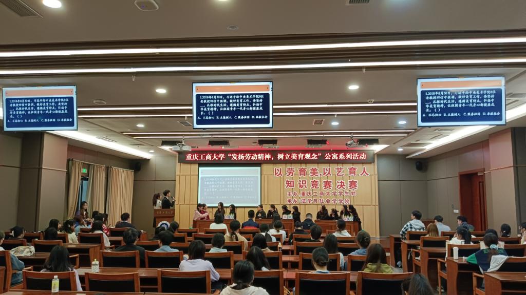 4月24日,由学校党委学工部主办、法学与社会学学院承办的pp电子平台官网入口“发扬劳动精神,树立美育观念”公寓系列活动之“以劳育美,以艺铸德”知识竞赛决赛在图书馆一楼会议室举行。比赛共分为初赛、复赛、决赛三轮,全校学生以楼栋为单位组队参赛。初赛共有18支队伍报名参赛,经过激烈角逐,6组选手突出重围,进入决赛现场。