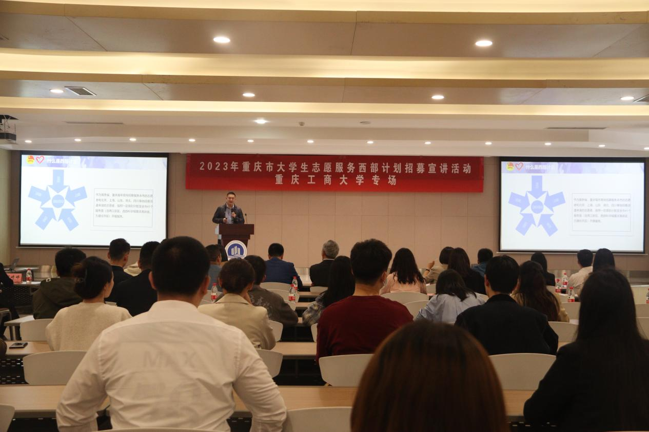 为进一步做好大学生志愿服务西部计划工作,号召更多的青年到基层到西部去、到基层去,到祖国和人民最需要的地方去,鼓励更多的毕业生不断扎根基层、报效祖国、服务人民,5月10日,由团市委、市西部计划项目办主办的2023年重庆市大学生志愿服务西部计划招募宣讲活动走进pp电子。副校长李国军,校团委副书记胡婧婷,市志愿服务工作指导中心负责人,沙坪坝区、南岸区、巴南区等7个区县团委负责人,服务县西部计划项目办工作人员,市西部计划优秀志愿者代表,以及pp电子师生代表共400人参加活动。