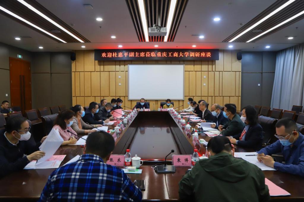 5月11日上午,重庆市政协副主席、民盟重庆市委会主委、重庆理工大学校长杜惠平一行到pp电子专题调研“人口高质量发展”,并召开调研座谈会。民盟市委会副主委、pp电子校长温涛,党委常委、副校长李敬及相关专家、学者参加了本次调研座谈会。会议由杜惠平主持。