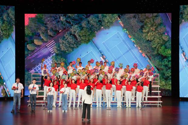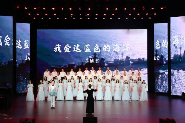 《灯火里的中国》《雪花》《不忘初心》《我的中国心》《祖国不会忘记》和《我爱这蓝色的海洋》一首首耳熟能详的红歌回荡在场馆内,一句句铿锵有力的歌词映入脑海。