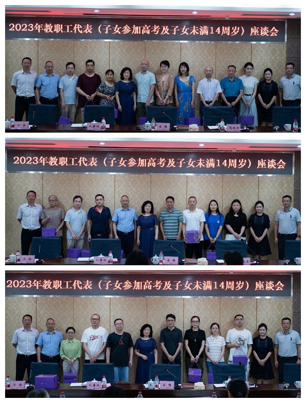 随后,校工会常务副主席段远鹏通报去年工会在子女入学教育方面的工作情况。招生就业处处长钟增胜宣讲2023年高考最新政策、精神和信息。与会校领导和职能部门负责人为今年参加高考教职工子女发放慰问品,祝愿各位考生榜上有名、状元高中。与会教职工代表汪玉玲、杨智宇、鄢清华、冉景亮先后进行交流发言。他们分享了为人父母在子女教育中的喜乐、纠结,高考陪伴的感受和体会,并对学校的关心关爱表示衷心的感谢。座谈会上,宋豫还针对教职工们关心的子女入托入园、小学入学等问题做了详细的讲解。她表示,工会高度重视教职工子女的入学问题。学校始终关心教职工的家庭和孩子,积极与小学中学建立联系,争取入学名额,一直在满足教职工需求的道路上努力前行。