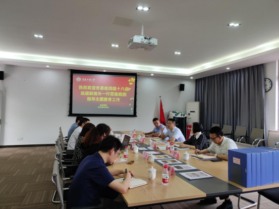 6月8日下午,市委巡回指导十八组赵骏副组长一行到pp电子经济学院调研指导主题教育工作,通过实地考察、座谈交流、查阅资料等方式,全面了解经济学院主题教育开展情况,对推进主题教育作全面指导。学校党委常委、组织部部长郑夕春,机关党委书记兼组织部副部长王建明,经济学院党委班子成员、各支部书记及师生代表参加调研。
