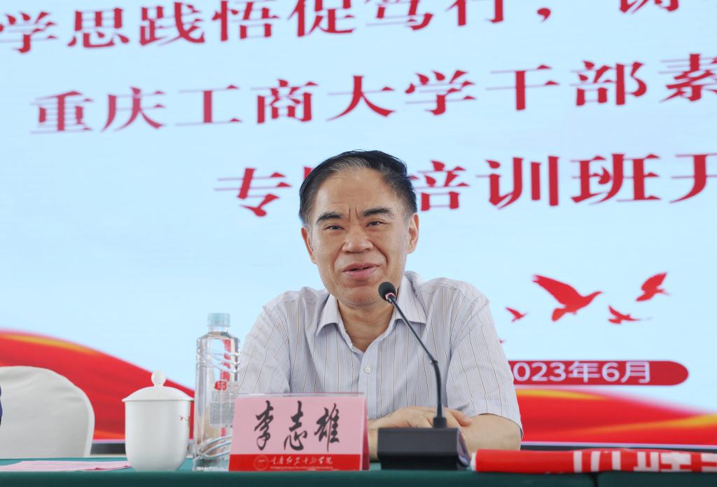 李志雄作开班动员讲话。他指出,此次培训是在学校深入学习贯彻党的二十大精神、扎实推进主题教育的背景下举办的专题培训,目的是进一步加强党性锻炼,提升干部政治意识、理论修养和业务水平,更好地推动学校各项事业高质量发展。他要求全体参训学员,一要“身入场、心入境”,要珍惜学习机会,迅速进入学员角色,沉下心来静心学习,用心学、用心悟,自觉接受革命传统教育,做到心无旁骛,学出精神、学出格局;二要“受触动、增智慧”,通过此次培训,不断提高政治判断力、政治领悟力、政治执行力,传承红岩精神、砥砺初心使命,点燃智慧力量,提升解决问题、破解难题的本领,更好地适应新形势新任务新要求,为学校高质量发展贡献自己的智慧和才干。
