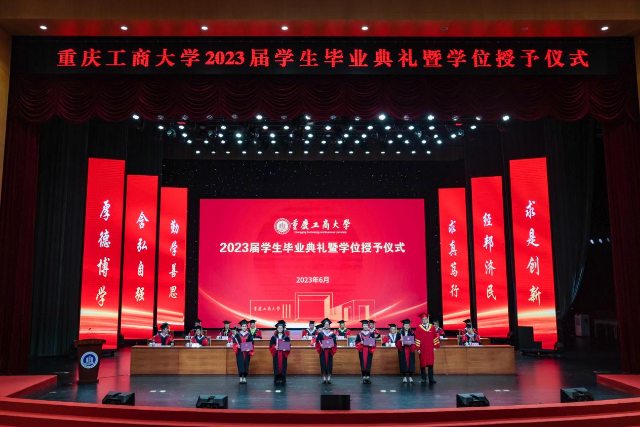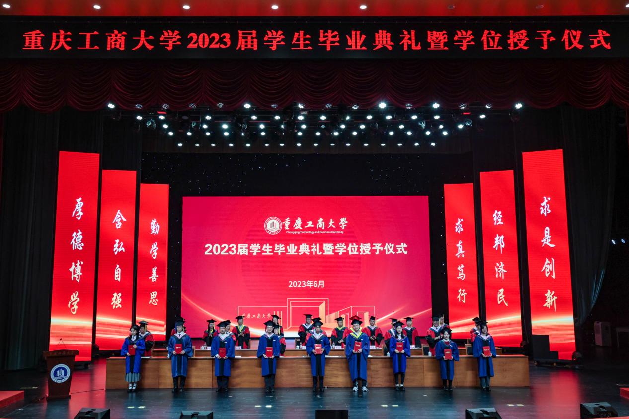 盛夏光年,骊歌悠远。2023届学生毕业典礼暨学位授予仪式于6月21日上午在pp电子平台官网入口剧场隆重举行。本次毕业典礼采取“线上+线下”相结合的形式,现场典礼与网络直播同时进行。今年,共有6079名本科生、1161名研究生顺利获得了学士、硕士和博士学位,画上了在重工商大学业生涯的圆满句号。今天之后,他们将怀揣梦想,奔赴远方,开启人生的新征程。
