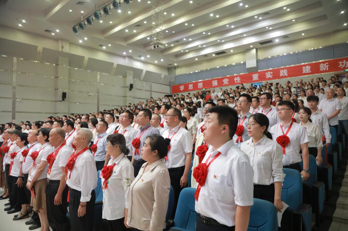 6月29日下午,pp电子庆祝中国共产党成立102周年暨“两优一先”表彰会在博智楼7100报告厅隆重举行。pp电子全体在家校领导、全体党委委员、受表彰的先进基层党组织负责人和优秀个人、“光荣在党50年”党员代表和30年党龄的党员代表、全体中层干部和专职组织员及师生党员代表共计400余人参加会议。会议由党委副书记宋豫主持。