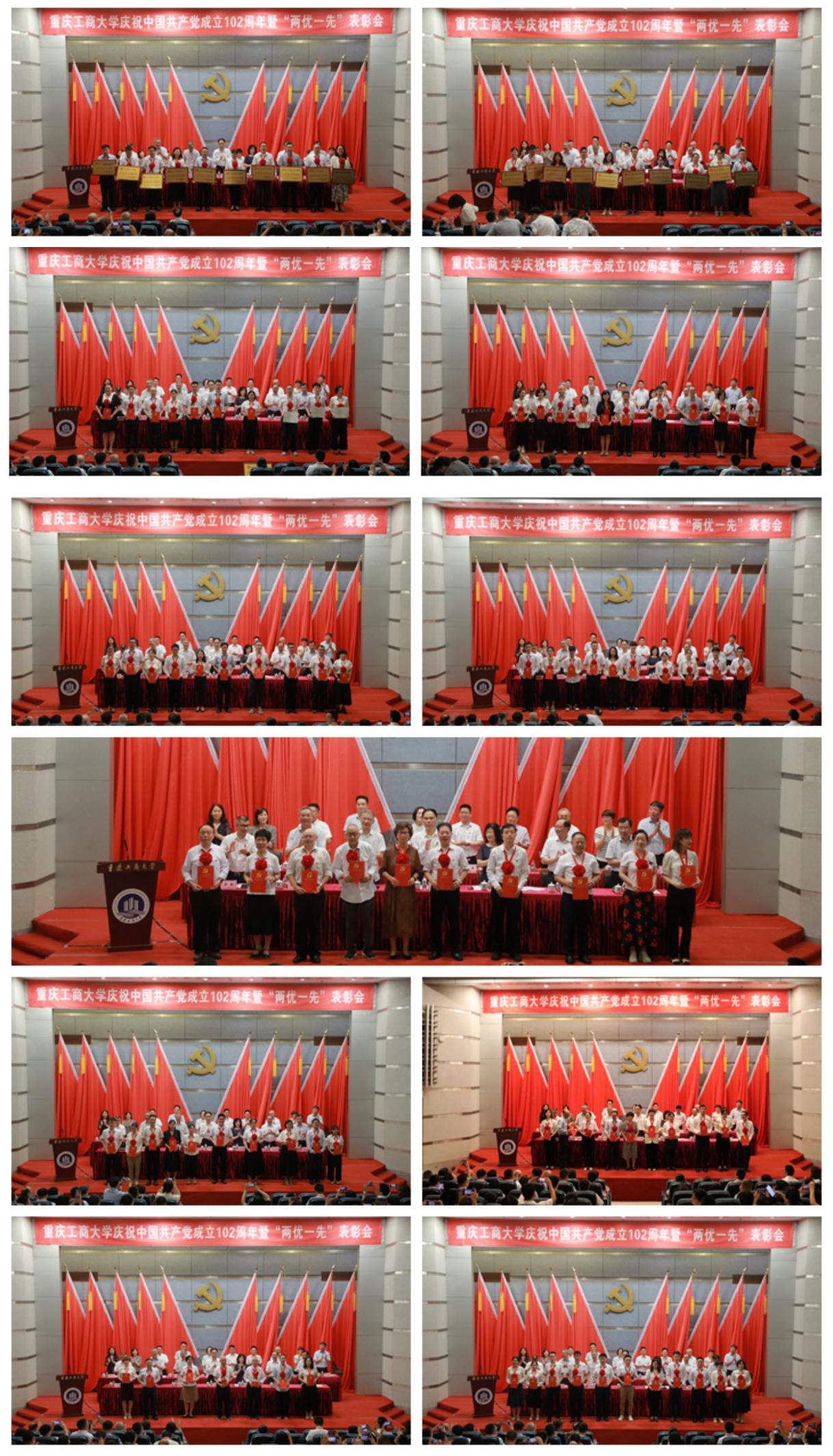 校领导先后为受表彰的先进基层党组织和优秀个人颁奖;为“光荣在党50年”党员代表颁发纪念章,为30年党龄的党员代表颁发纪念证书。