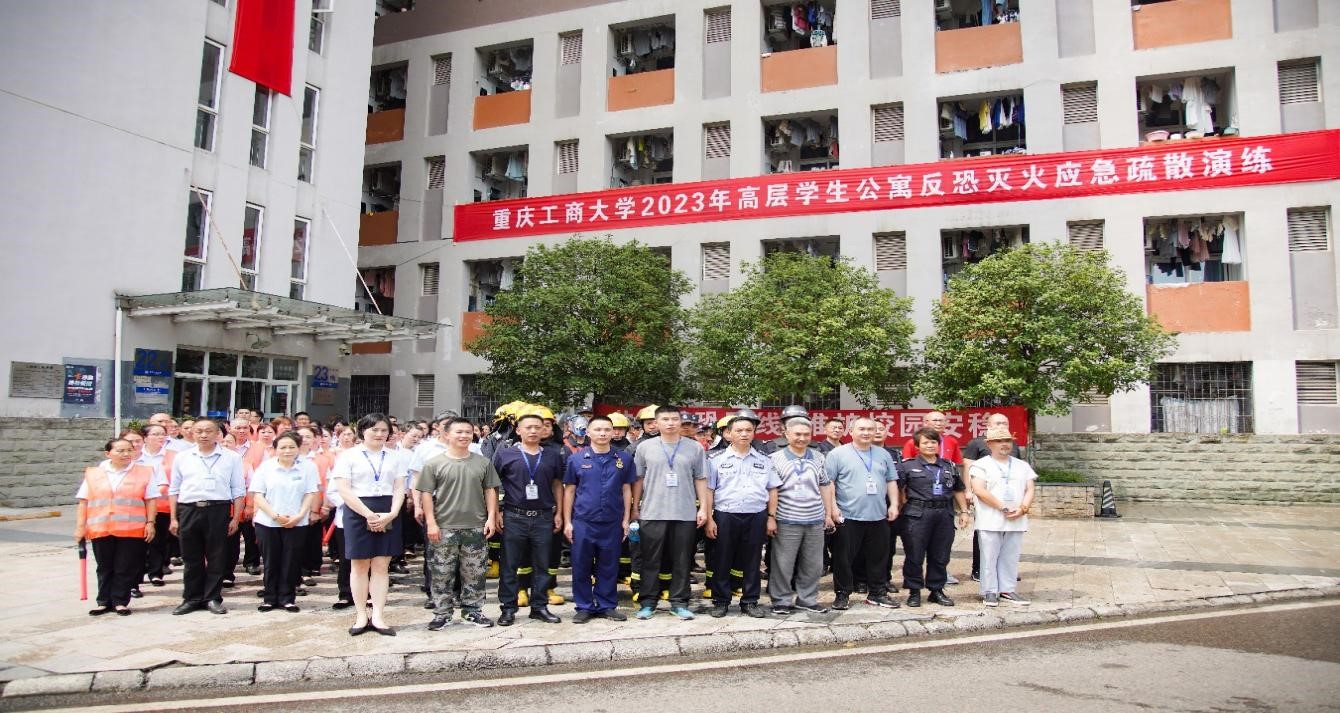为深入学习贯彻习近平总书记关于安全工作的重要指示批示精神,落实主题教育“重实践”要求,提升学校反恐灭火应急疏散能力,7月10日下午,党委保卫部(保卫处)联合党委宣传部、党委学工部、后勤处以及相关物业公司在pp电子新北区高层学生公寓开展了反恐灭火应急疏散演练。保卫干部、安保队员、物业和食堂员工、新北区高层学生公寓的学生、部分军训教官、南岸区二塘消防救援站救援人员共计900余人参加了演练。